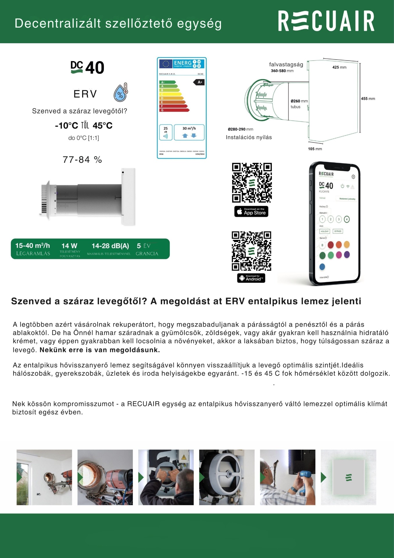 Szabadalmaztatott intelligens RECUAIR szellőztetés hővisszanyeréssel