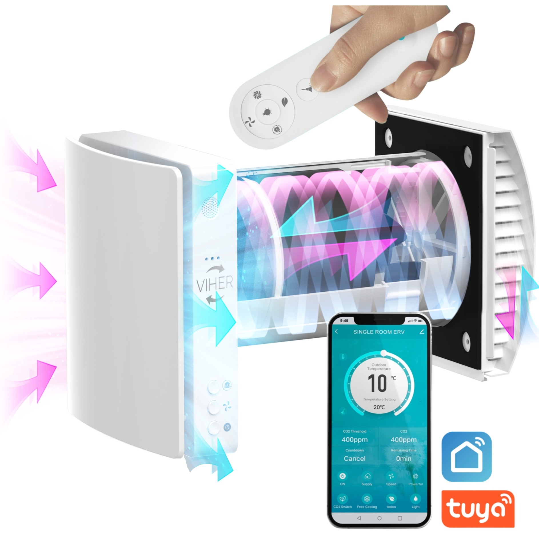A Viher szellőztető a legnépszerűbb okosotthon platformokkal kompatibilis (Tuya), így egyszerűen vezérelheti otthoni automatizációs rendszeréből.